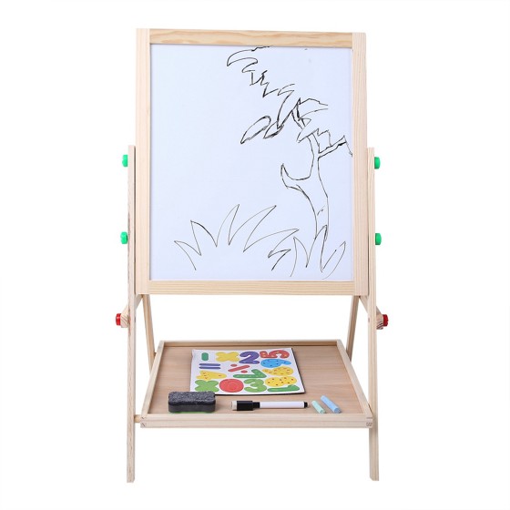 H 原木可调节高度儿童画架 双面黑板写字板 支架式幼儿绘画板 松木材质安全防倒设计 益智生日礼物 YMBB02323
