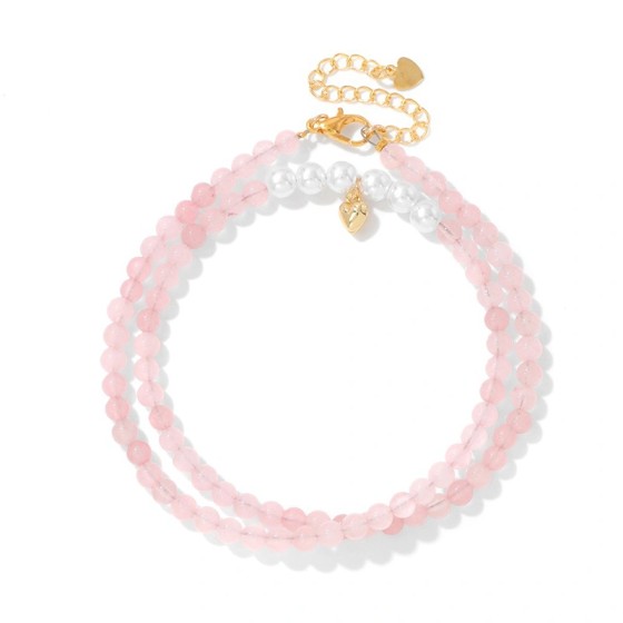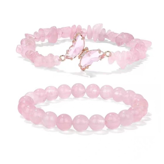 2-Piece Pink Quartz Bracelet Set: Irregular Chips & 8mm Beads|Rose Gold Plated Butterfly Charm (16x21mm)|19cm Adjustable|Delicate Romance for Work to Date Night|Women's Aura Booster