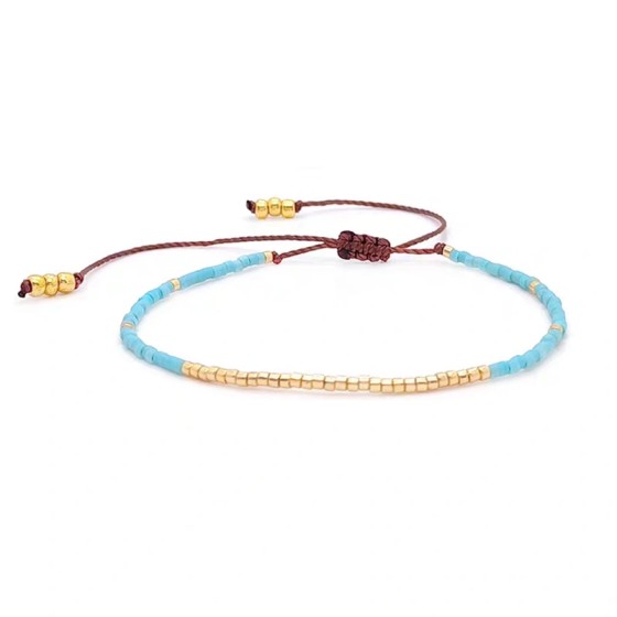 Adjustable Braided Bracelet: Tri-Color Mini Flat Beads on Cotton Cord (Navy/Black/Red) with Gold Accent Cubes - 26cm Slide Knot Design, 1g Lightweight Solo Piece for German Daily Refinement