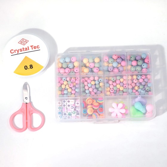 60-Compartment Bead Craft Kit: 3 Sets Include Alphabet Beads & Heart/Star/Flower Charms|2 Rolls Elastic String (5m) & Beading Tool|19cm+13.5cm Storage Boxes|DIY Bracelet Necklace Making Kit for Jewelry Design