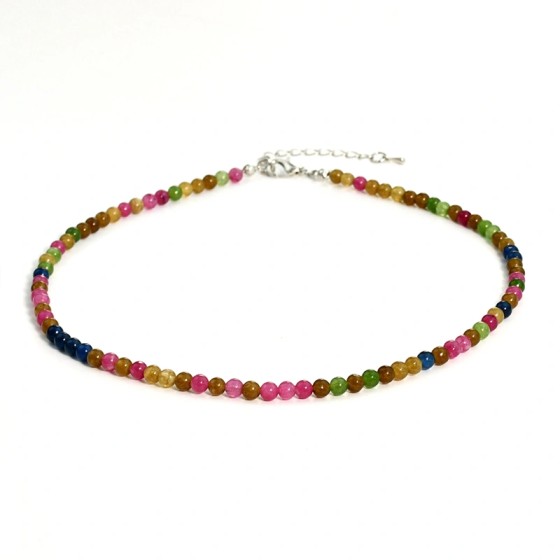 Vivid Beaded Necklace: Multicolor Glass Beads (Blush Pink, Spearmint, Sunflower Yellow, Sky Blue) with Silver-Tone Clasp & 5cm Extender Chain - Adjustable Length for German Urban Style, Boho Daily Accent
