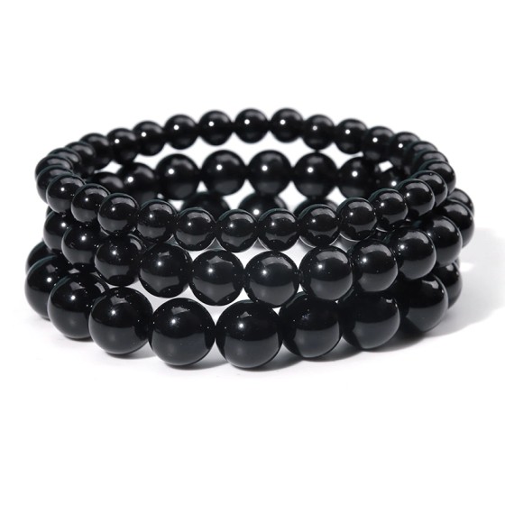 🔴⚫️ 3-Bracelet Set: Natural Red OR Black Onyx Beads|6/8/10mm Round Gemstone Beads|18cm Wrist Size|Lustrous Single-Color Strands for Daily Wear