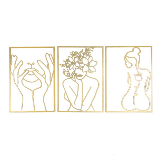 3 Pack Metal Wall Art: Abstract Female Silhouette in Gold - Minimalist Line Decor for Living Room/Entryway (20x13in, 1507g) Includes Anchors & Screws Installation Kit