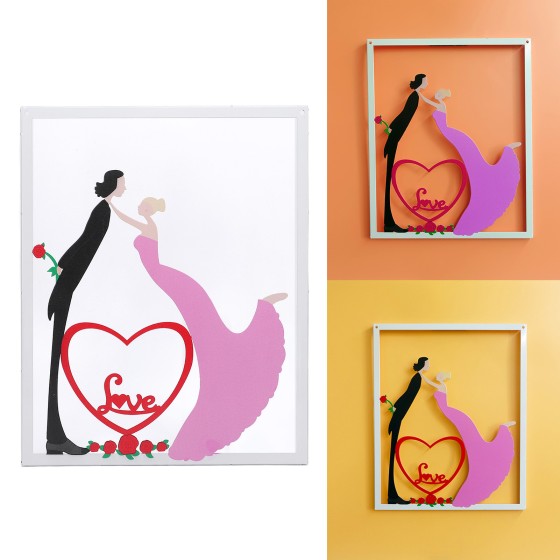 Dimmable LED Heart Picture Frame 31x39 cm with Motion Sensor & Metal Decor - Glowing Wall Art for Mood Lighting (Battery Operated, LR44 Included) - With Light Strip & Mounting Kit