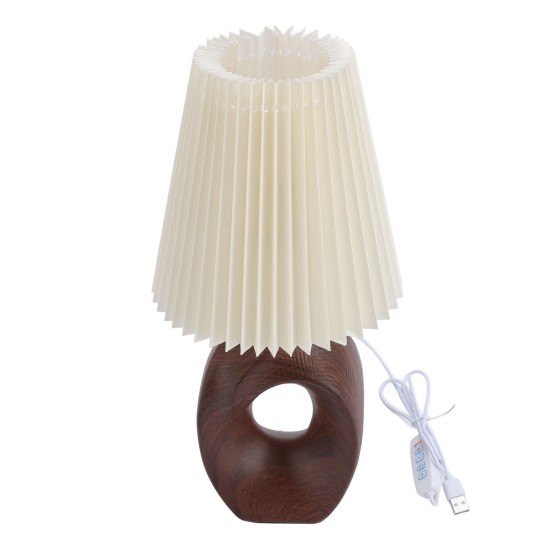 复古胡桃木纹台灯 三色变光亚麻百褶灯罩 无极调光阅读灯 卧室床头婚房装饰小夜灯 礼物