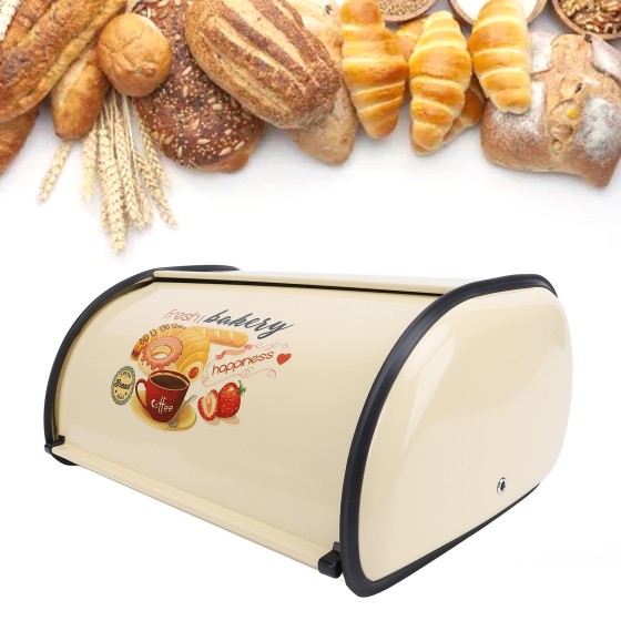 Champagne Drum Bread Box with Dessert Prints (Macaron/Strawberry/Donut) | 13.4" Metal Storage for German Bakeries | Dishwasher Safe Iron Container | Breakfast Board Organizer
