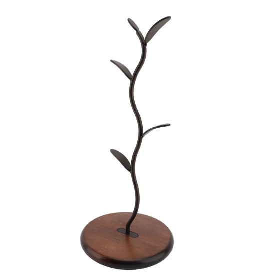 American Rustic Mug Holder with 4 Hooks | Steel-Wood Display Stand (28oz) | Wall Mount Kit Included | Space Saving for European Homes + Jewelry Organizer