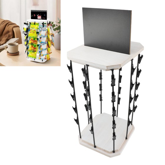 Rotating Snack Rack with 40 Clips & Chalkboard Top | 360° Display Stand for Chips/Candy (Cream/Black) | Metal-Wood Party Organizer | Compact 22x42.5cm - 169g