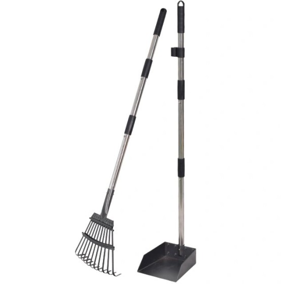 Heavy Duty Pet Waste Remover Set: 11-Tine Rake & Extra Wide Dustpan (97cm Stainless Handle) | for Large Dog Breeds Poop | Grass/Gravel/Pavement Cleaning | Salt-Resistant & Non-Slip Grip | Easy Snap Assembly