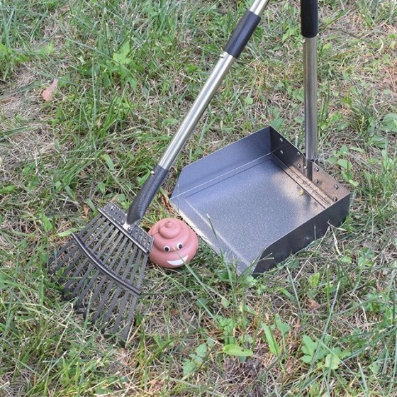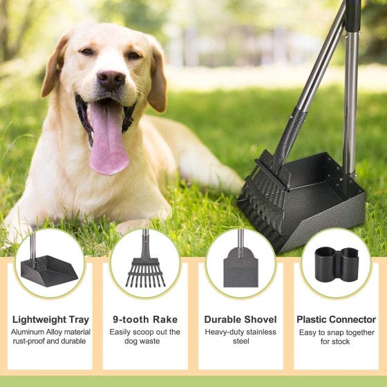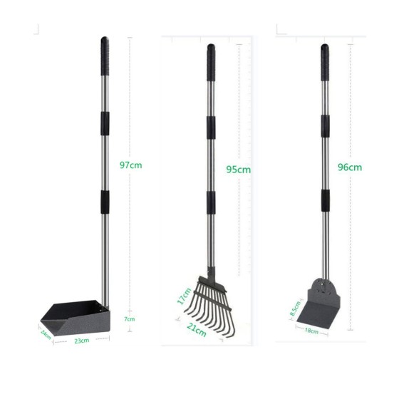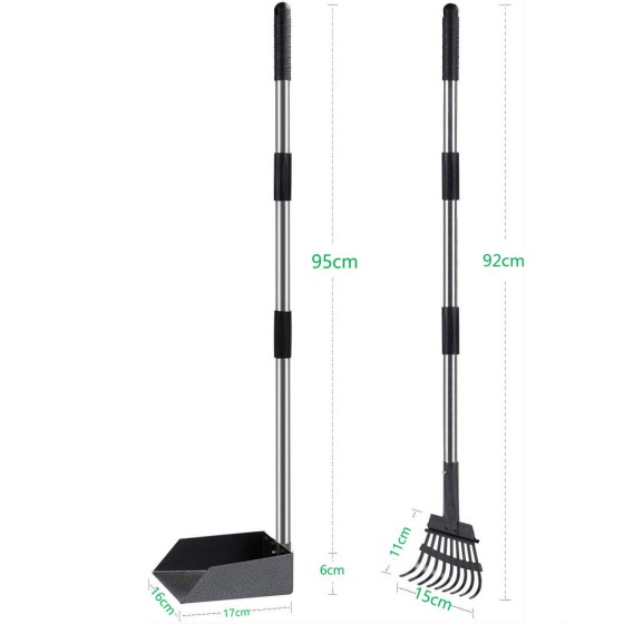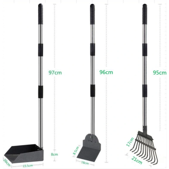 No-Touch Pet Waste Cleanup Kit - 95cm Scoop + 92cm 9-Tine Rake + Hand Broom | Stand-Up Operation for Grass & Pavement