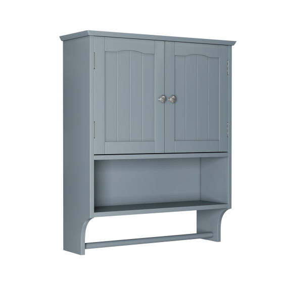 Bathroom Wall Cabinet with Towel Holder, Over The Toilet Storage with 2 Doors & 3 Open Shelves, Light Grey Medicine Cabinet with Adjustable Shelves, Waterproof