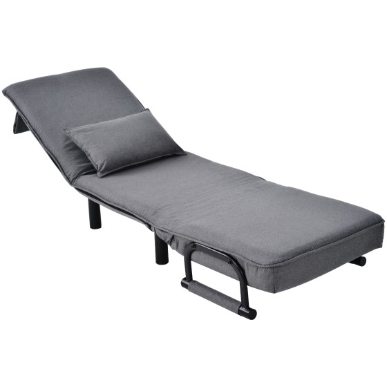 6-Position Recliner Chair, Foldable Sleeper Chair with Pillow, Convertible Lounger Bed Chair for Living Room, 330lbs Capacity Guest Bed, Space Saving Design, Gray