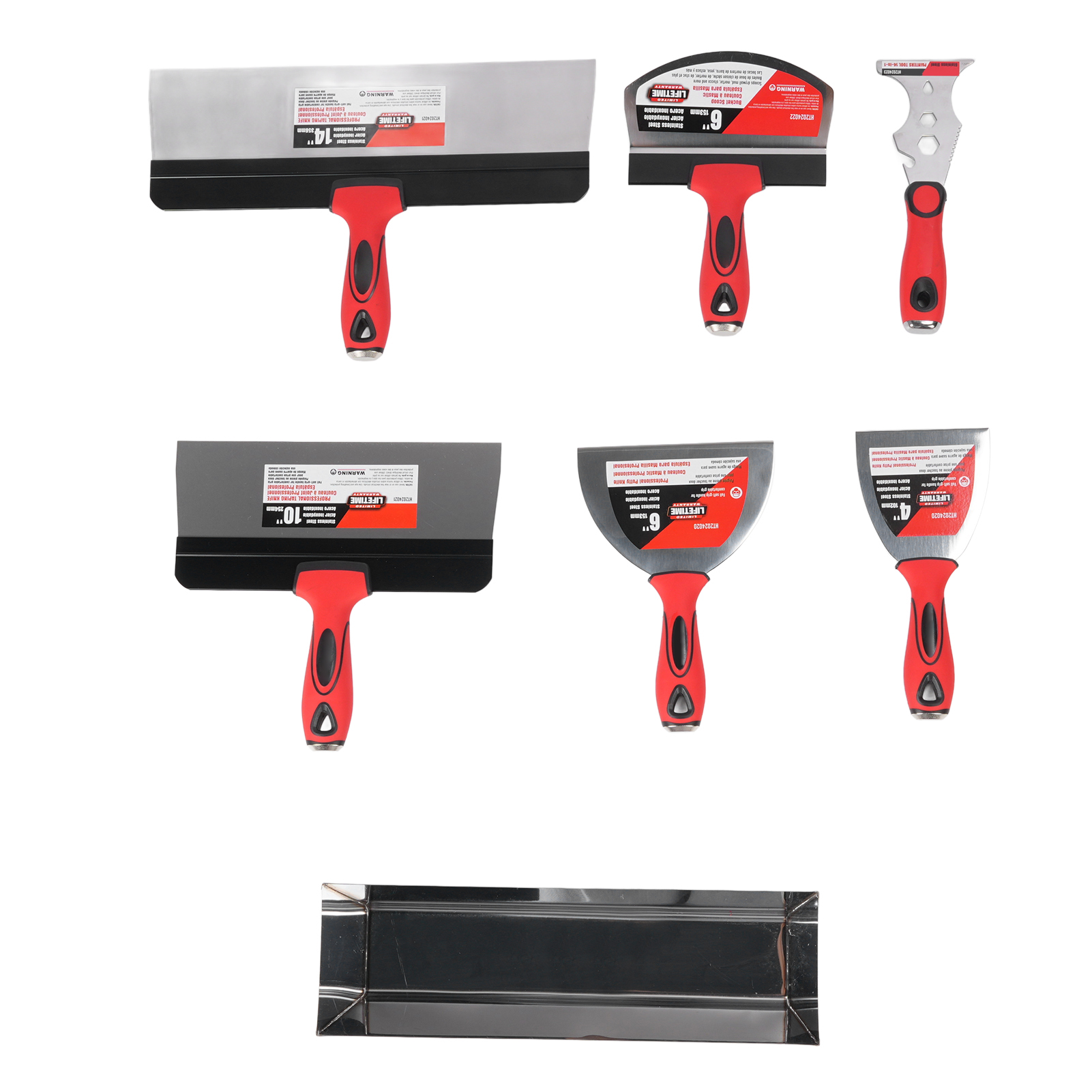 12英寸干墙工具套装 不锈钢油灰刀刮刀6件套 含挂泥板与收纳包 专业墙面修补油漆刮除