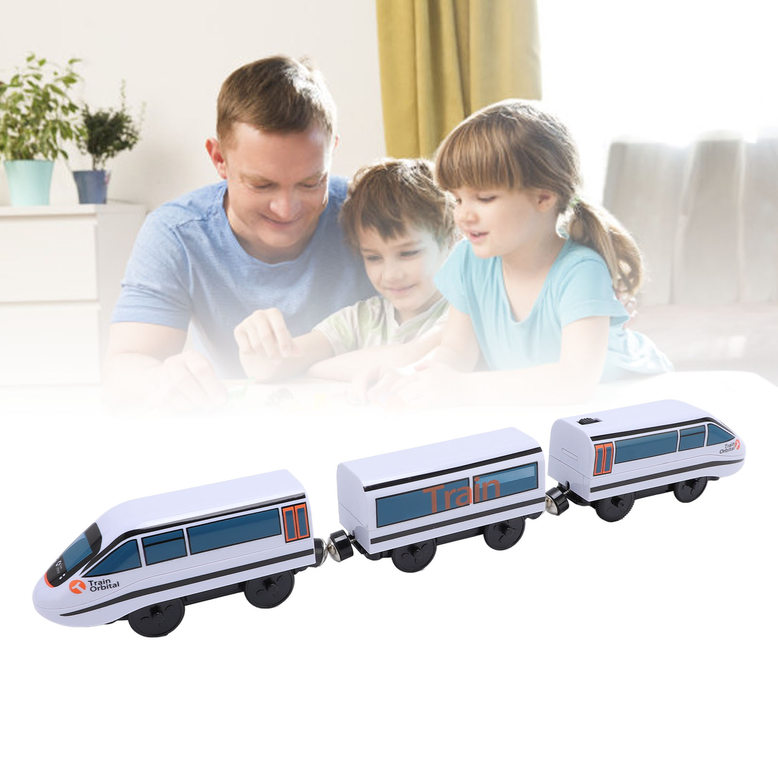 儿童电动小火车玩具套装 三节车厢多用途工程车 兼容多数标准轨道 自动行驶带灯光音效 ABS环保材质 男孩女孩生日礼物 培养动手能力