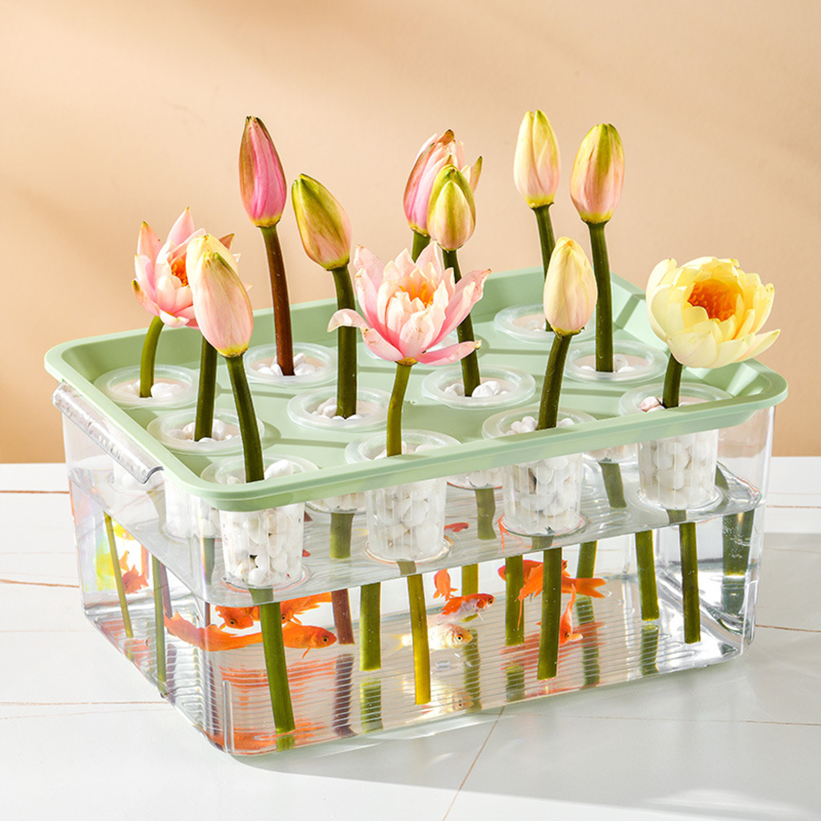 鱼菜共生一体箱 透明鱼缸无土栽培种植盒 阳台水培育苗园艺植物造景 带盖防水绿盖设计 附12只定植篮(可养金鱼/种菜)