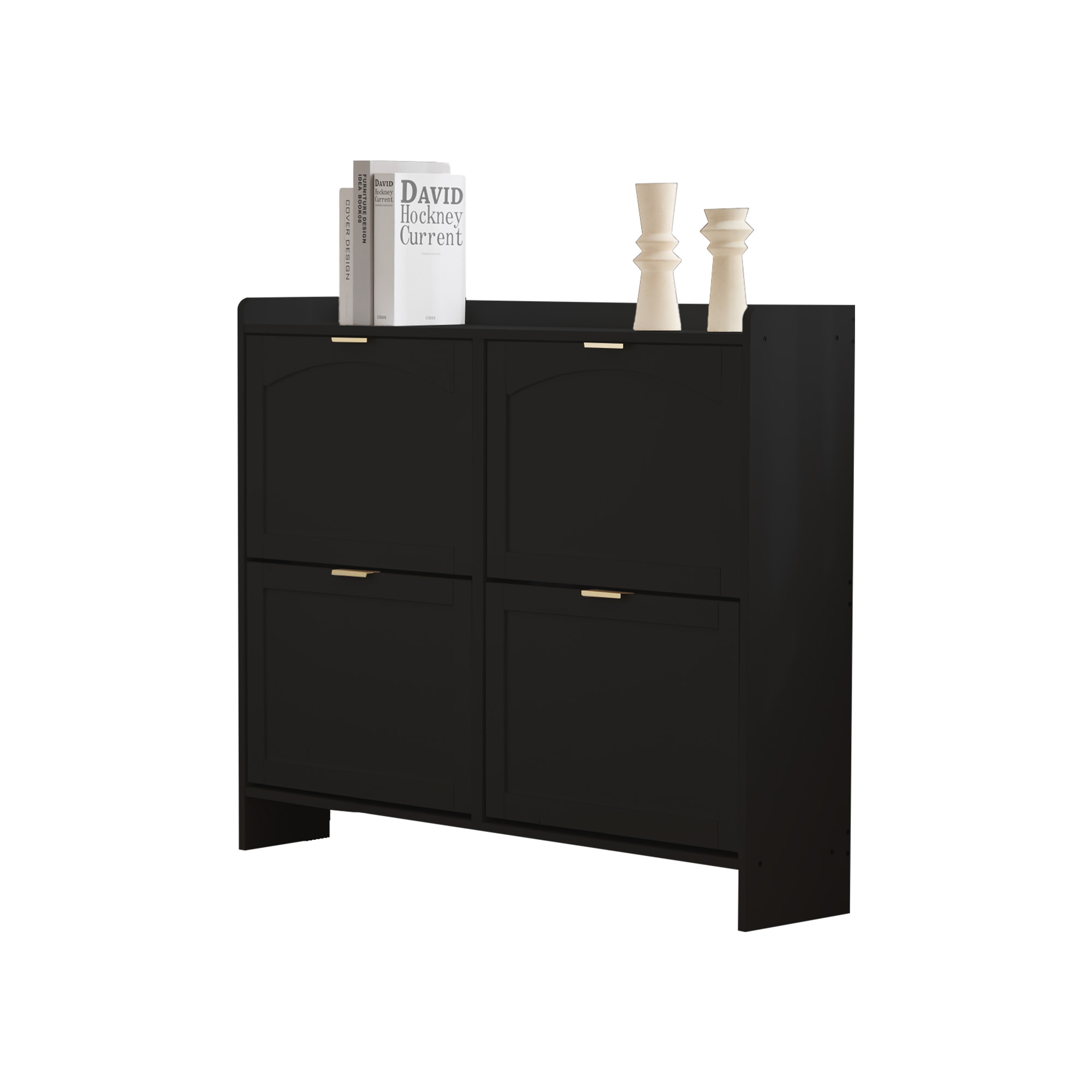 拱形设计翻门鞋柜 带隐藏式拉出鞋架 超薄防潮储物柜 110cm宽现代简约玄关柜 黑色