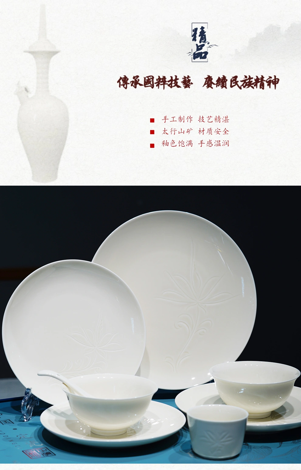 定窑月光餐具 36 件套装 - 手工精制,温润釉色 zhengqinghe